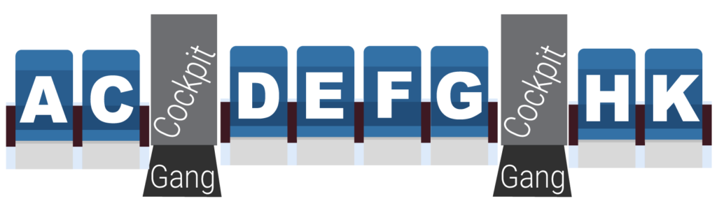 - Sitzplätze mit den Buchstaben C, D, G und H sind immer Gangplätze